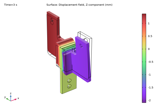 In the Settings window for Surface, click Replace Expression in the upper-right corner of the Expression section. From the menu, choose Component 1 (comp1)>Solid Mechanics>Displacement>Displacement field - m>w - Displacement field, Z-component.
