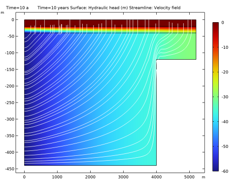In the Settings window for Surface, click Replace Expression in the upper-right corner of the Expression section. From the menu, choose Component 1 (comp1)>Darcy’s Law>Velocity and pressure>dl.H - Hydraulic head - m.