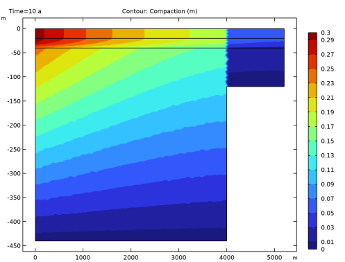 In the Settings window for Contour, click Replace Expression in the upper-right corner of the Expression section. From the menu, choose Component 1 (comp1)>Definitions>Variables>b - Compaction - m.