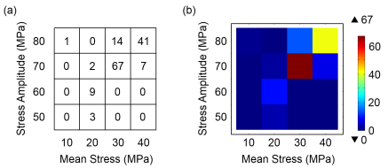 σm, and holds the counted number of cycles having approximately these values. Other parameters can also be used to define a bin. These are maximum stress, minimum stress, maximum tensile stress, or R-value. In