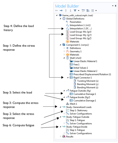 Figure 3-22. Finally, calculate the fatigue usage factor by solving the fatigue study (step 6). All steps are schematically shown in