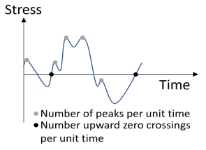 Random Vibration Theory for a detailed discussion. Statistical properties that are meaningful to a fatigue analysis include the number of upward zero crossings per unit time