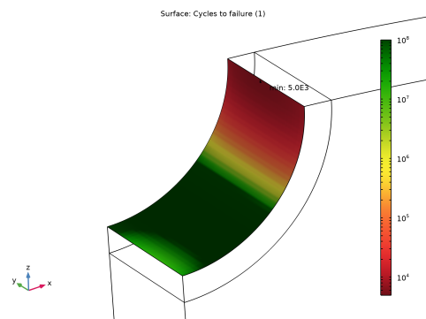In the Model Builder window, expand the Results>Cycles to Failure (ftg)>Surface 1 node, then click Marker 1.