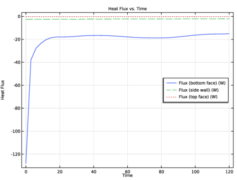 In the Settings window for Line Integration, click Replace Expression in the upper-right corner of the Expressions section. From the menu, choose Component 1 (comp1)>Heat Transfer in Fluids>Boundary fluxes>ht.ntflux - Normal total heat flux - W/m².