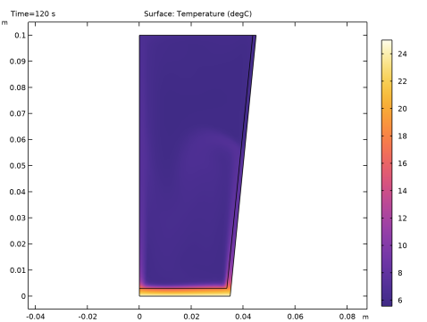 In the Model Builder window, under Component 1 (comp1)>Heat Transfer in Fluids (ht) click Initial Values 1.