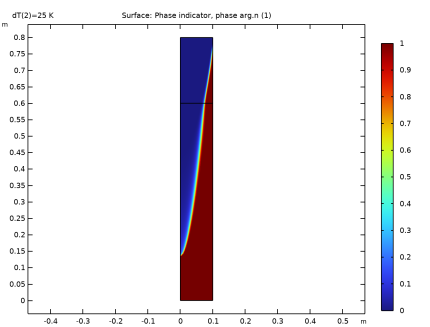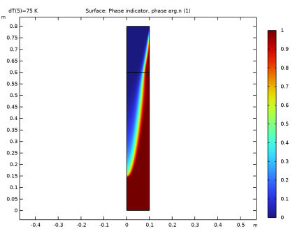 In the Settings window for Surface, click Replace Expression in the upper-right corner of the Expression section. From the menu, choose Component 1 (comp1)>Heat Transfer in Fluids>Phase change>ht.theta1 - Phase indicator, phase arg.n - 1.