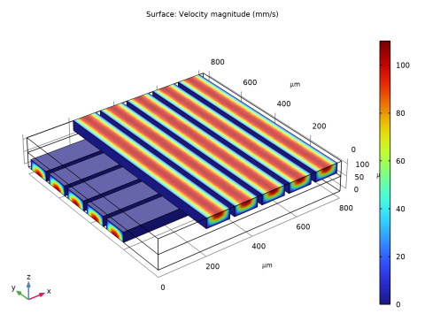 In the Settings window for Surface, click Replace Expression in the upper-right corner of the Expression section. From the menu, choose Component 1 (comp1)>Laminar Flow>Velocity and pressure>spf.U - Velocity magnitude - m/s.