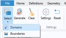 Using the Select menu, you choose whether to create colored selections for domains or boundaries.