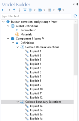 Explicit Selections created. If this number is lower than the number of domains or boundaries, the previously generated selections and colors will be reused in a repeating sequence. This can be used to limit the number of feature nodes generated in the Model Builder.