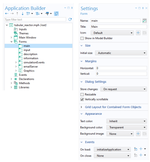 Choices of whether the form should be Resizable or not and Vertically scrollable or not when used as a dialog.