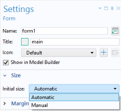 Automatic determines the size based on the form objects that the form contains. If you are using grid layout mode and there are columns or rows set to Grow, then the size is not defined by the form objects. In this case, the size is estimated using the Form Editor grid size as a base point. (It will typically be slightly larger.) You can change the grid size by dragging the right or bottom border of the grid. For more information on grid layout mode, see Grid Layout.