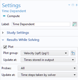 Compute Study command. This ensures that the graphics object displays the velocity plot while solving.