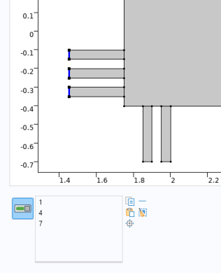 The user can here select boundaries by clicking directly in the graphics window, corresponding to the Graphics object, or by adding geometric entity numbers in a list of boundary numbers corresponding to a