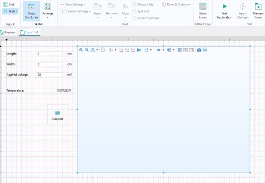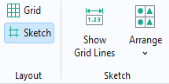 The Show Grid Lines option displays a sketch grid to which objects are snapped. Note that the grid used in sketch layout mode is different from the grid used in grid layout mode. The default setting for sketch layout mode is to show no grid lines. Without grid lines visible, a form object being dragged is snapped relative to the position of the other form objects.