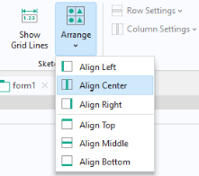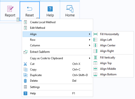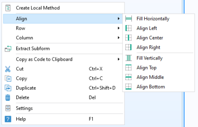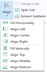 The Align menu gives you options for aligning form objects within a cell. You can also let a form object dynamically fill a cell horizontally or vertically.