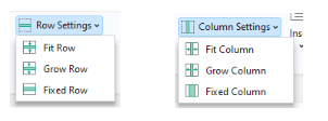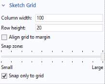 Note that if you switch from sketch to grid layout mode, all rows and columns will have the setting Fit and the handles for the frame will not be displayed. If any of the rows and columns have the