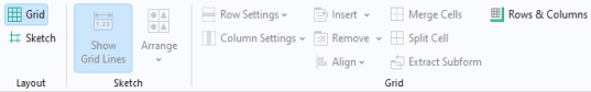 The buttons and menus in the ribbon Grid group give you easy access to commands for: