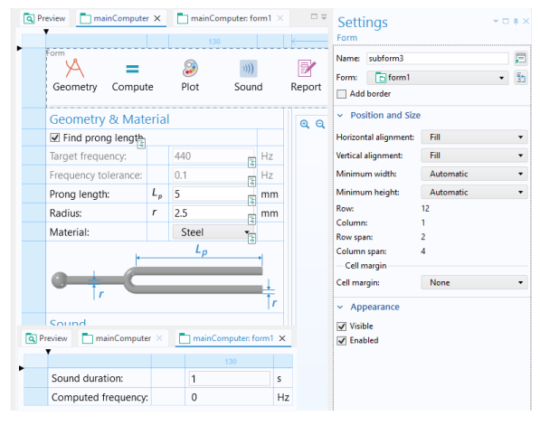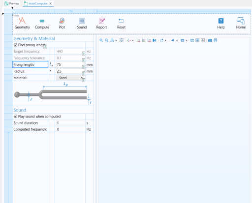 To review the example shown here, open the Tuning Fork application from the Application Libraries under