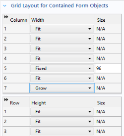 Fill and the growth policy of the column or row allows the form object to be resized, then you can specify a minimum width or height, respectively. The minimum size can be set to