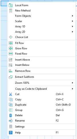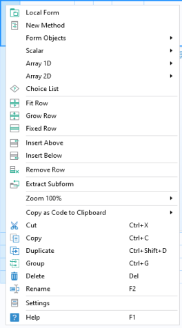 This operation creates a new form with the selected cells and replaces the original cells with a form object of type Form. In the