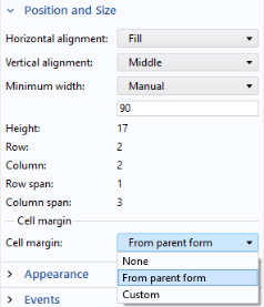 Vertical margins that are added between form objects and the borders of their containing cells. These settings will affect all form objects contained in the form, with their individual