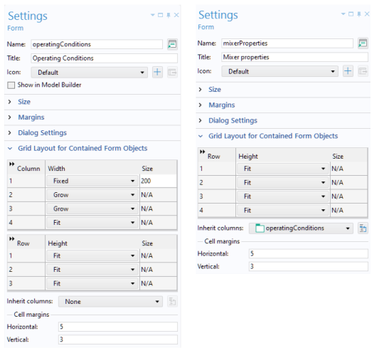 When aligning forms vertically, as in the example above, you may want to ensure that all columns are of equal width. For this purpose, you can use the Inherit columns option in the