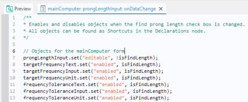 You can add local methods to form objects, including buttons, menu items, and events. Local methods do not have nodes displayed under the Methods node in the application tree. In the method window for a local method, its tab displays the path to its associated user interface component, as shown in the figure below for the case of a checkbox object.