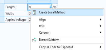To add a local method for a form or form object event, select the Create Local Method option in the