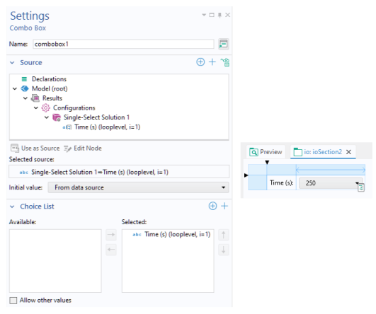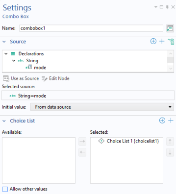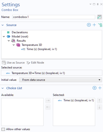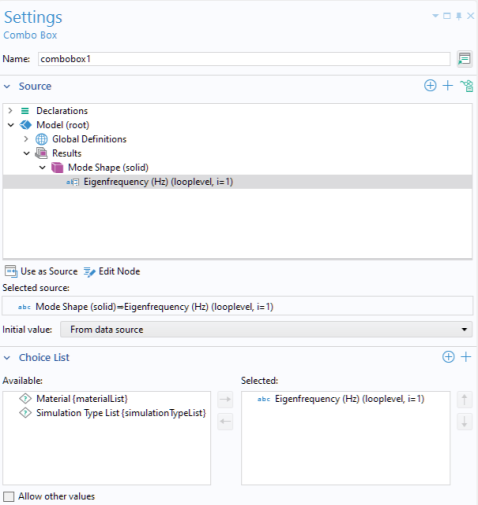 Eigenfrequency (looplevel). To create a combo box, right-click and select