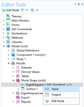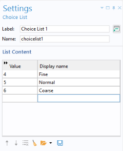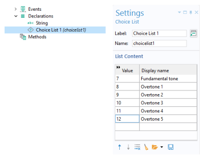 Declarations node and cannot be modified by the user. For greater flexibility, such as giving names to each parameter or eigenfrequency value, you need to declare the choice list manually, as described in the previous section.