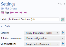 Configurations from the resulting context menu. Configurations provide centralized control over plot groups, ensuring uniform style and dataset values without adjusting each group individually. Each option applies to multiple plot groups in the model tree and allows simultaneous updates.
