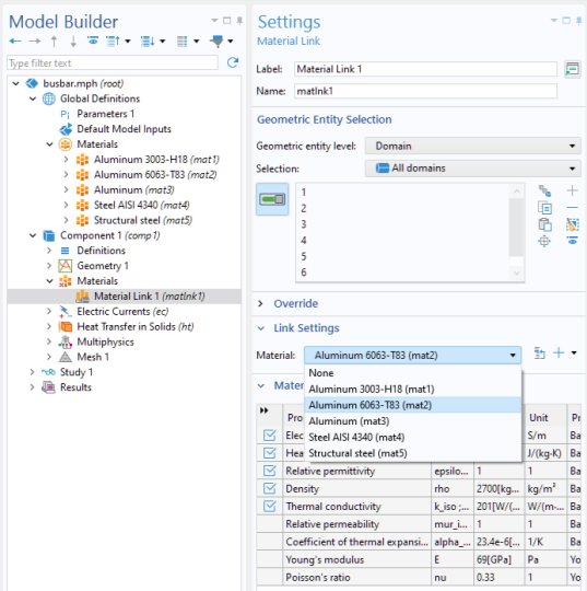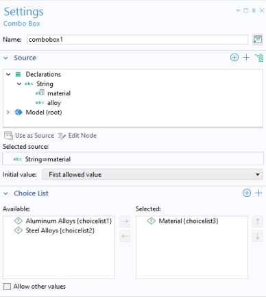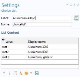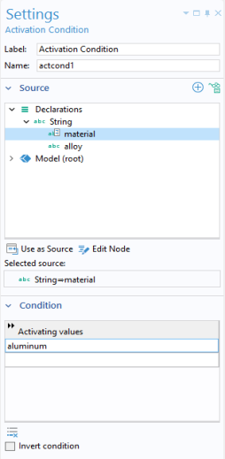 The activation condition for the Aluminum Alloys choice list is shown in the figure below.