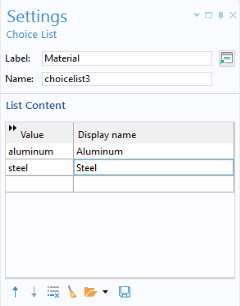 Material choice list is used to define a discrete set of allowed values for the