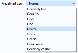 Data Access in the ribbon. This gives access to the combo box for a predefined element size, as shown in the figure below.