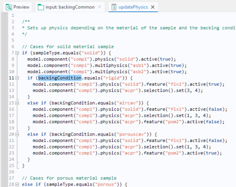 This code links the value of the string mode to the Eigenfrequency setting in the Plot Group