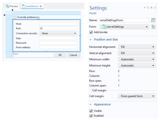 The figure below shows the referenced form serverSettings, which is a local form to the form