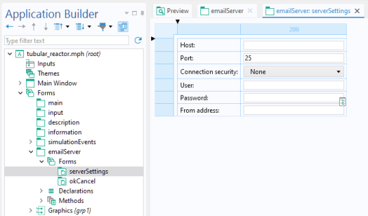 emailSettingsForm. This example is taken from the application Tubular Reactor. For more information, see