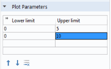 Plot Parameters table the number of rows correspond to the number of input arguments of the function. The first input argument corresponds to the top row.