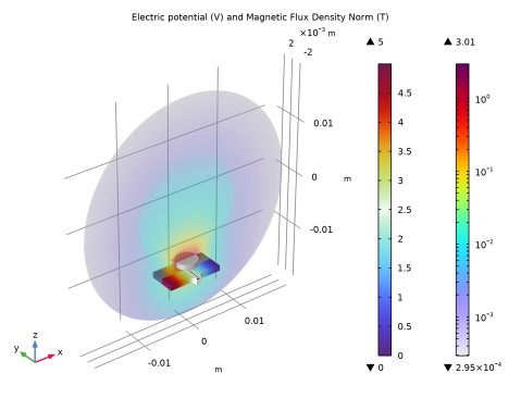 In the Model Builder window, right-click Electric Potential and Magnetic Flux Density Norm and choose Contour.
