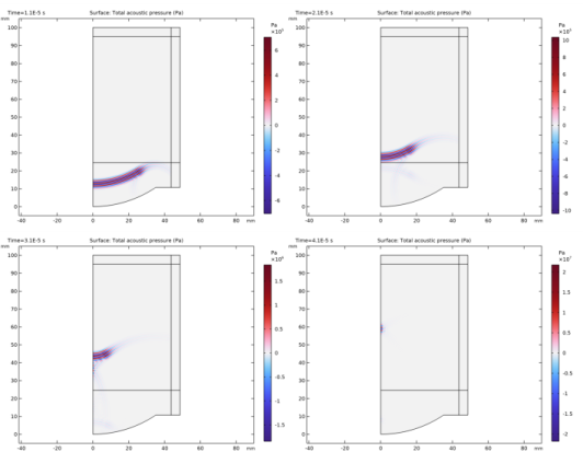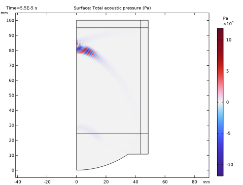 In the Model Builder window, under Component 1 (comp1) > Nonlinear Pressure Acoustics, Time Explicit (nate) click Nonlinear Pressure Acoustics, Time Explicit Model 1.