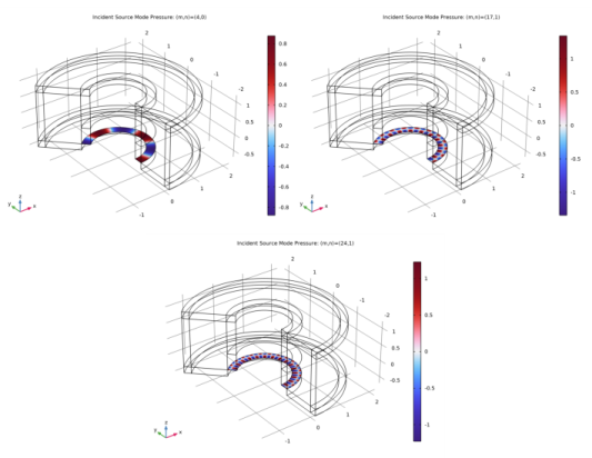 In the tree, select Study 1/Parametric Solutions 1 (sol2) > Linearized Potential Flow, Frequency Domain > Acoustic Pressure, 3D (lpff).