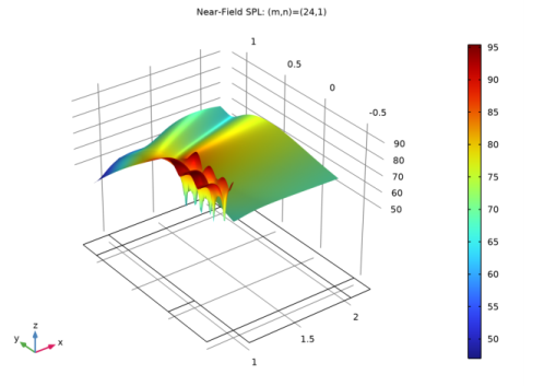 In the tree, select Study 1/Parametric Solutions 1 (sol2) > Linearized Potential Flow, Frequency Domain > Sound Pressure Level (lpff).