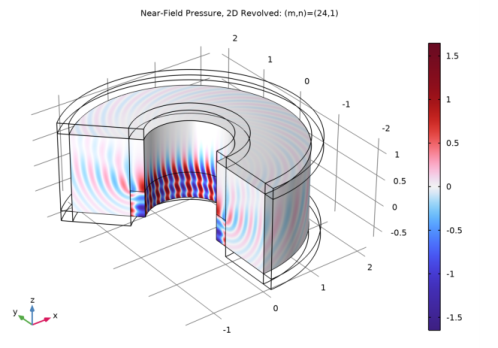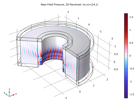 In the Model Builder window, expand the Near-Field Pressure, 2D Revolved 1 node, then click Surface.