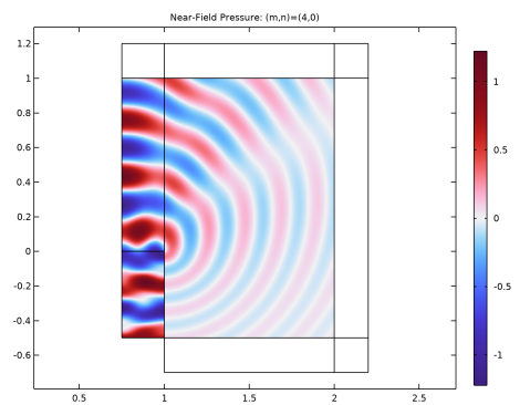In the tree, select Study 1/Parametric Solutions 1 (sol2) > Linearized Potential Flow, Frequency Domain > Acoustic Pressure (lpff).