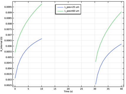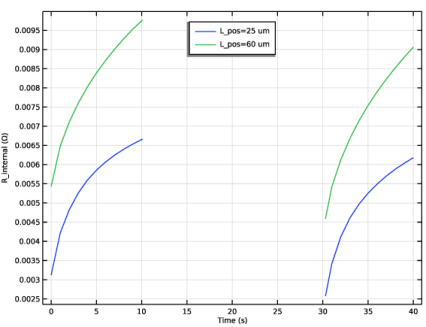 In the Settings window for Global, click Replace Expression in the upper-right corner of the y-Axis Data section. From the menu, choose Component 1 (comp1) > Definitions > Variables > R_internal - R_internal - Ω.