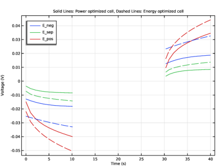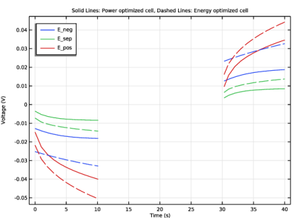 Click Add Expression in the upper-right corner of the y-Axis Data section. From the menu, choose Component 1 (comp1) > Definitions > Variables > E_sep - Voltage loss, separator - V.