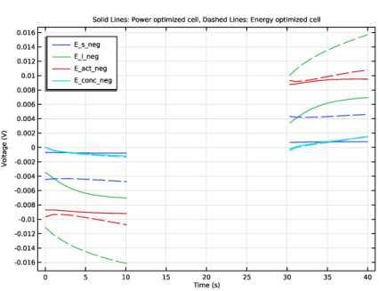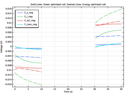 Click Add Expression in the upper-right corner of the y-Axis Data section. From the menu, choose Component 1 (comp1) > Definitions > Variables > E_l_neg - Electrolyte ohmic voltage loss, negative - V.