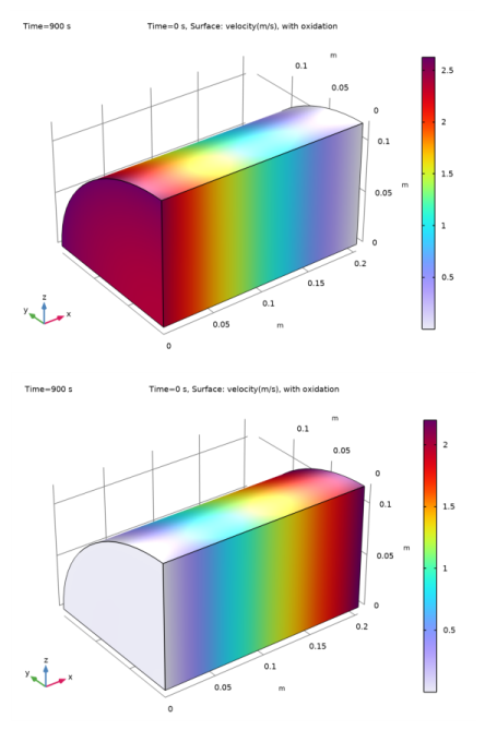 In the Model Builder window, under Study 1 > Solver Configurations > Solution 1 (sol1) > Time-Dependent Solver 1 > Segregated 1, Ctrl-click to select Temperature, Temperature (2), Temperature (3), and Concentration C1_O2.