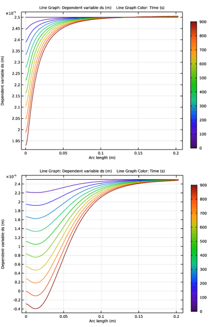 In the Model Builder window, expand the Soot layer thickness along the centerline, without oxidation reaction node, then click Line Graph 1.