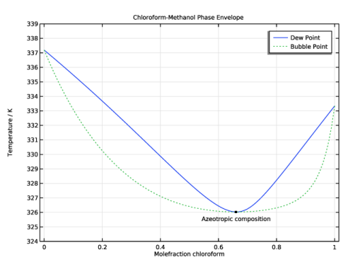 In the Model Builder window, under Study 1 - Dew Point and Boiling Point Curves click Step 1: Stationary.